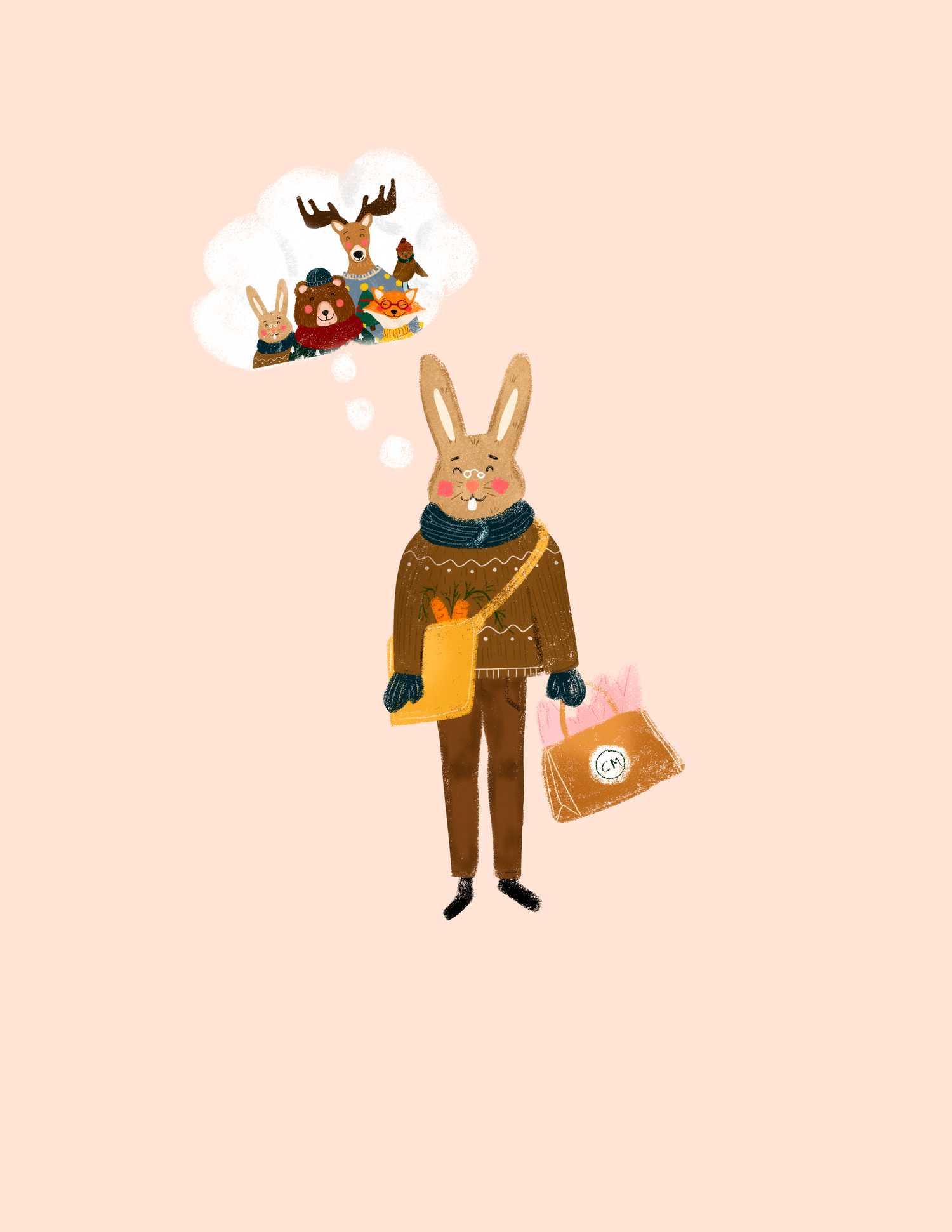 Chaque année, il prend le temps de préparer des biscuits aux carottes pour ceux et celles qu'il aime... et glisse toujours une petite carte de voeux dans ses cadeaux. C'est aussi celui qui réunit tout le monde, qui crée les moments doux et les souvenirs qui restent. Et il a choisi une carte où tous ses proches se retrouvent... parce qu'il aime rassembler les coeurs.